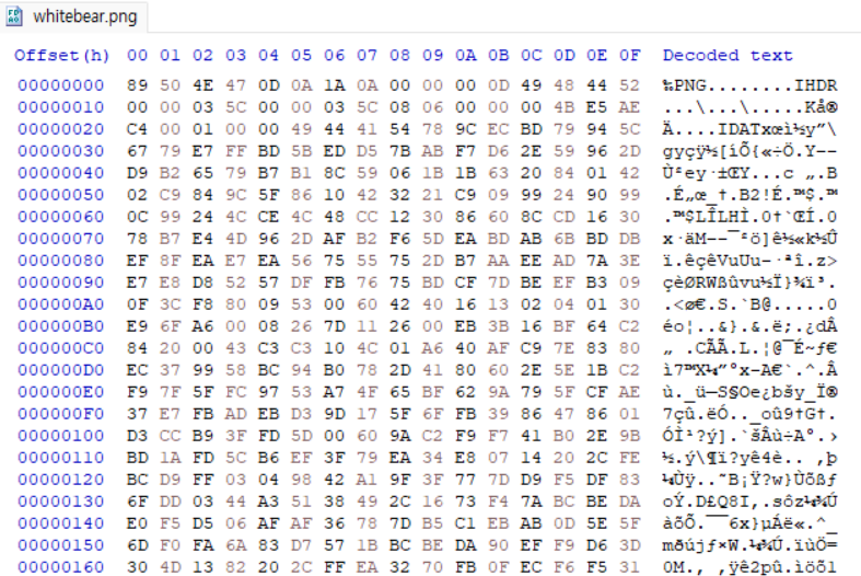 그래서 png 파일의 핵사값을 보자! 하고 HxD로 봤더니