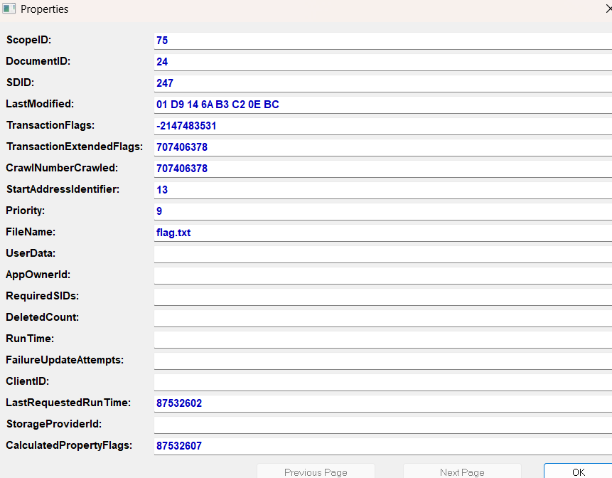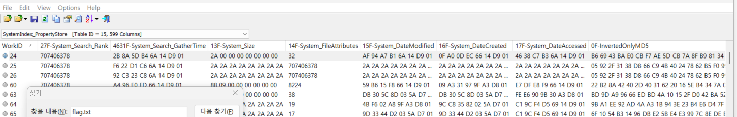해당 값을 가지고 파일의 내용 데이터가 있는 SystemIndex_Properties 테이블로 이동한다